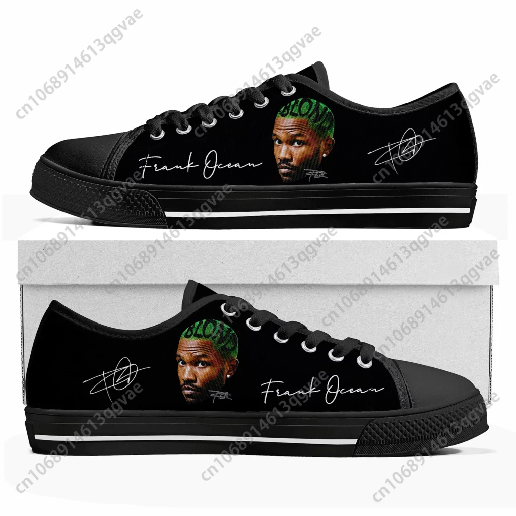 Frank Ocean Blonde Sneakers – Custom Black Canvas Low Tops, Men’s & Women’s Unisex Casual Streetwear, R&B Music Artist Graphic Print, Hip Hop Fan Gift