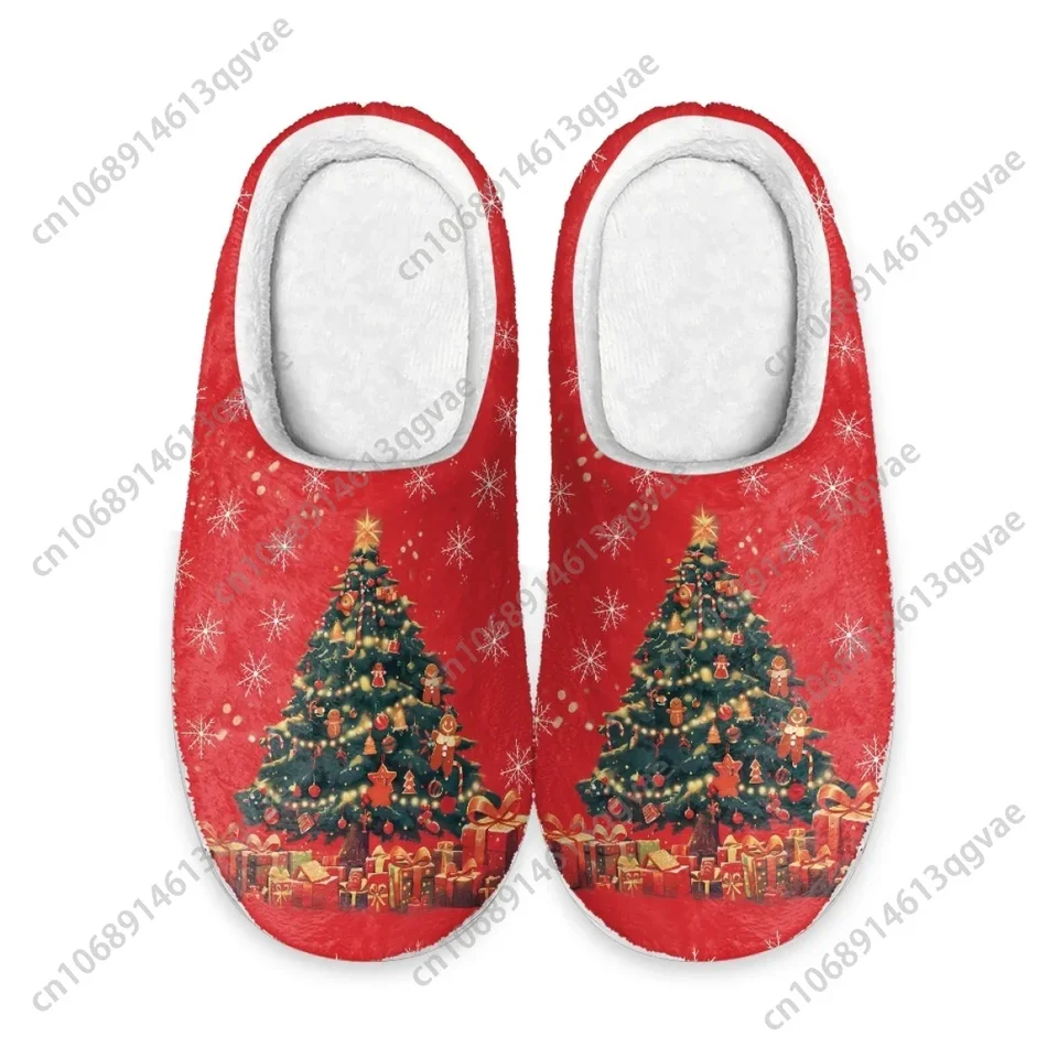 Festive Christmas Tree Red Plush House Slippers - Cozy Holiday Indoor Shoes