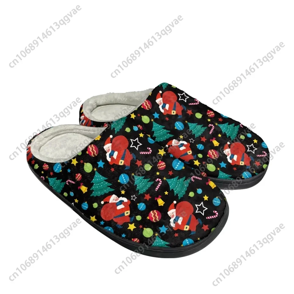 Festive Santa Claus Christmas Print Plush Slippers - Warm Winter Indoor House Shoes