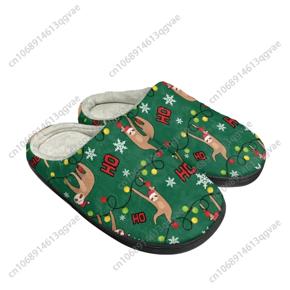 Festive Sloth Christmas Pattern Plush House Slippers – Green