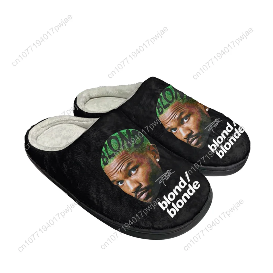 Frank Ocean Blonde Album Cover Slippers – Cozy Black Plush House Shoes for Men & Women