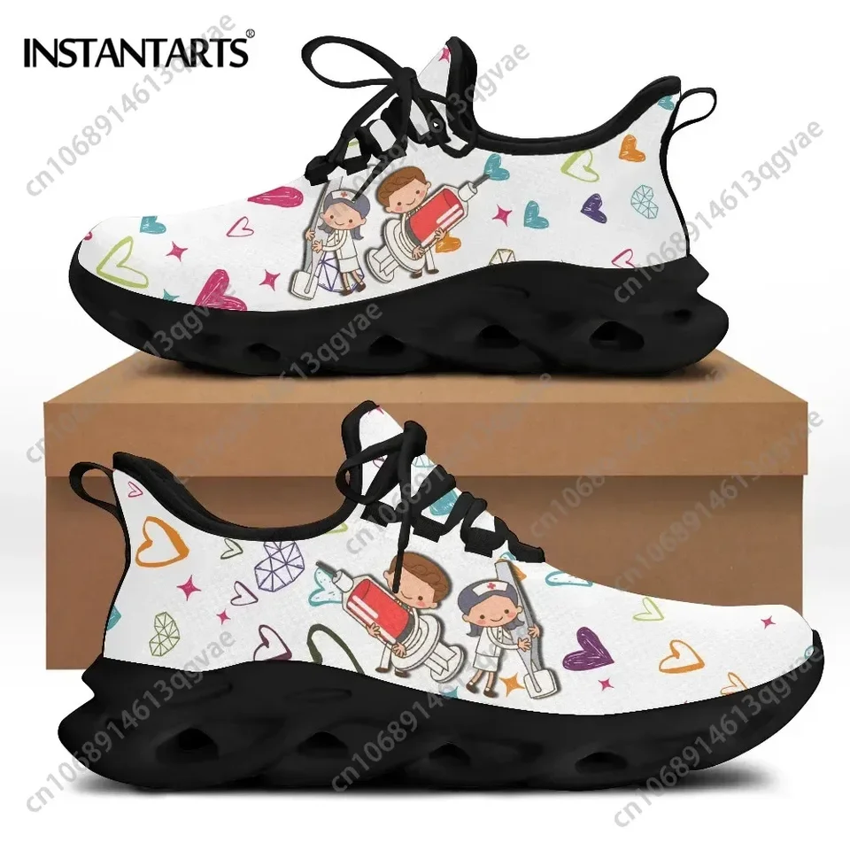 INSTANTARTS Cartoon Nurse Doctor Print Sneakers – Lightweight Breathable Mesh Running Shoes for Healthcare Professionals