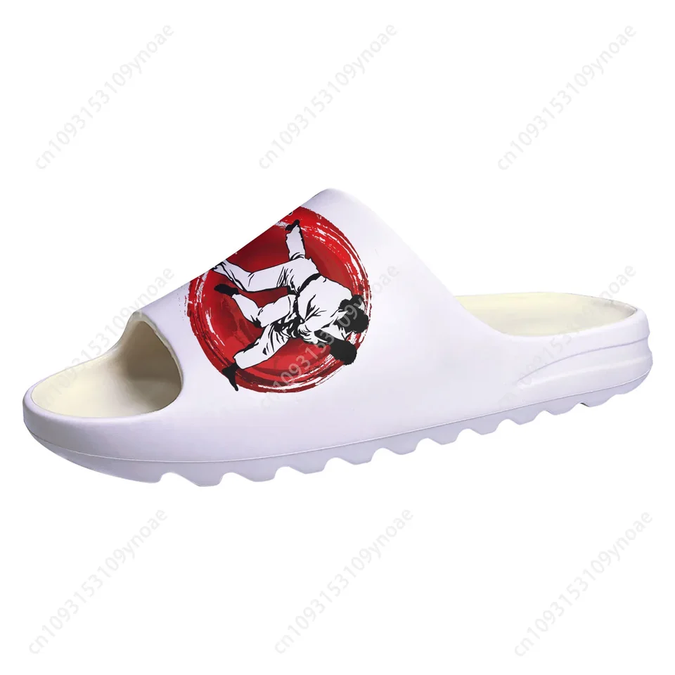 Judo Jiu Jitsu Martial Arts Graphic Slide Sandals – White Lightweight EVA Comfort Slides for Men & Women