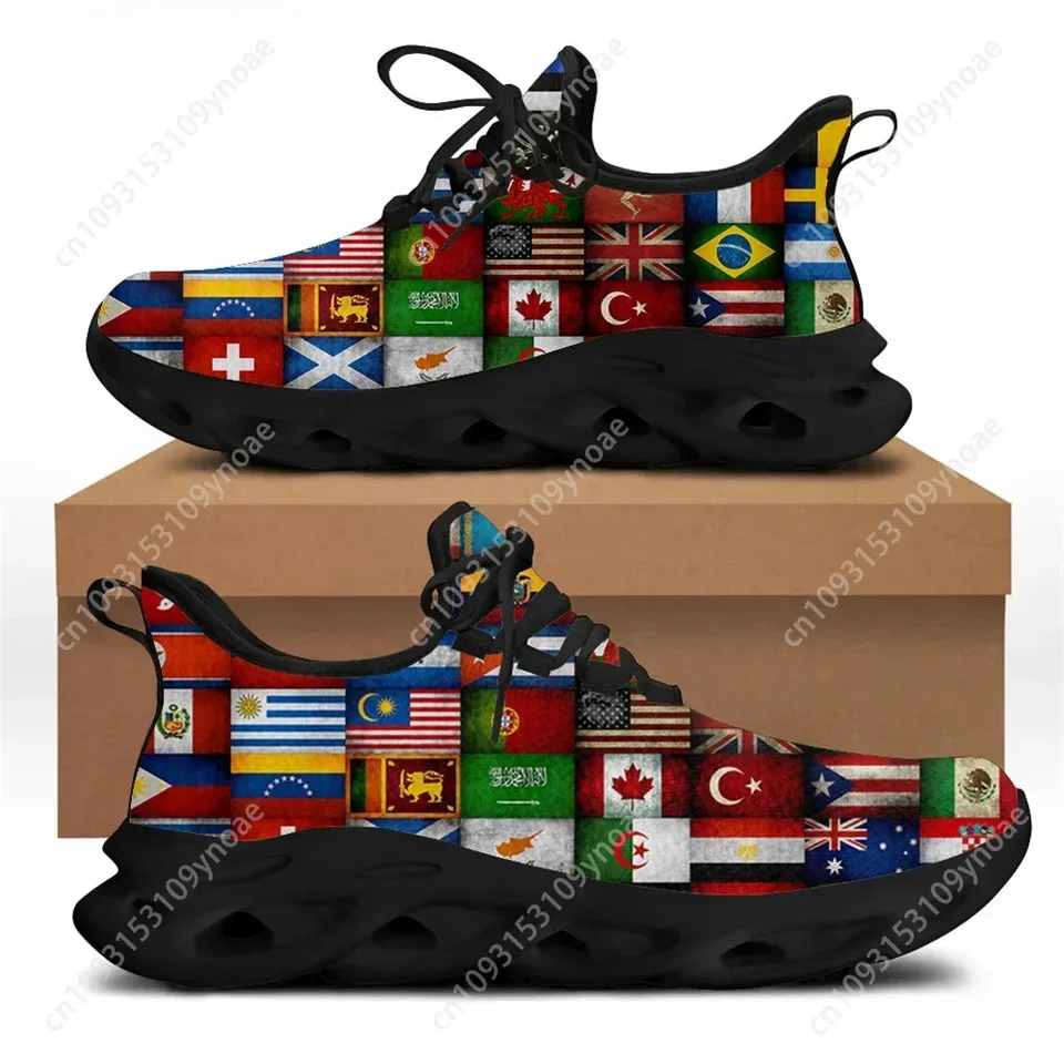 Men’s and Women’s World Flag Print Sneakers – International Multi-Flag Athletic Running Shoes