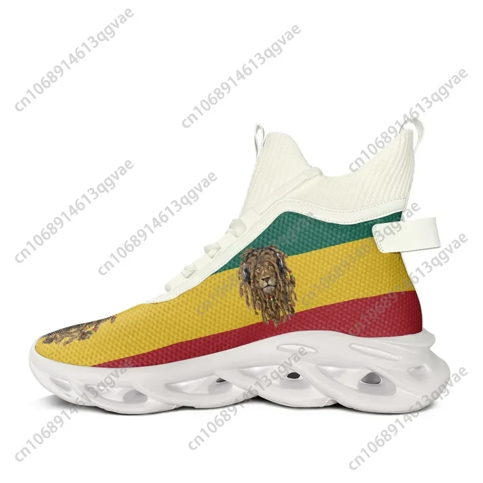Men’s Lion of Judah Reggae High-Top Sneakers – Rastafarian Flag Design Mesh Walking Shoes