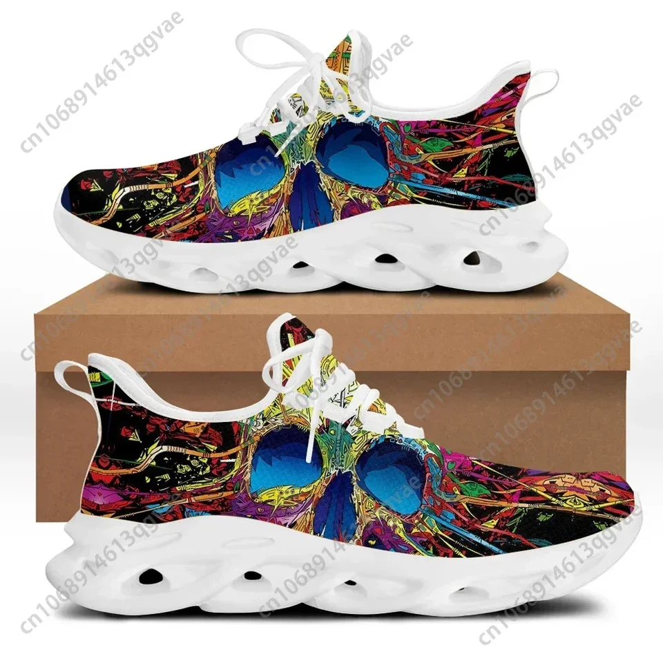 Men’s Psychedelic Skull Printed Sneakers – Colorful Lightweight Breathable Running Shoes