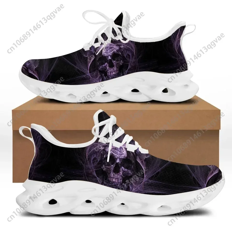 Men’s Purple Skull Graphic Sneakers – Lightweight Gothic Athletic Running Shoes