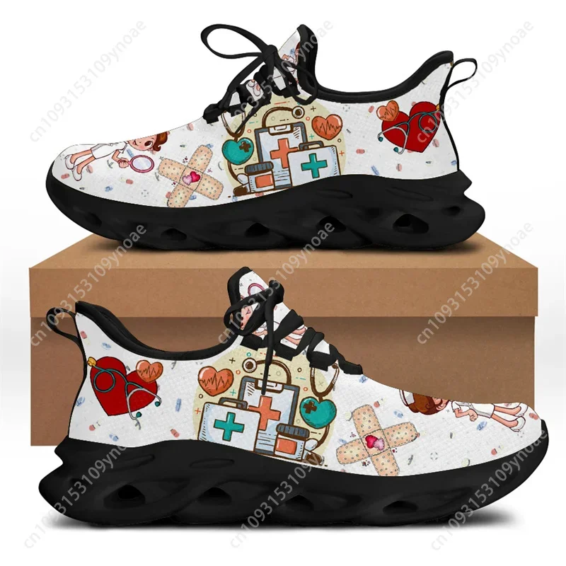 Nurse Medical Theme Cartoon Print Sneakers – Women’s Lightweight Athletic Shoes