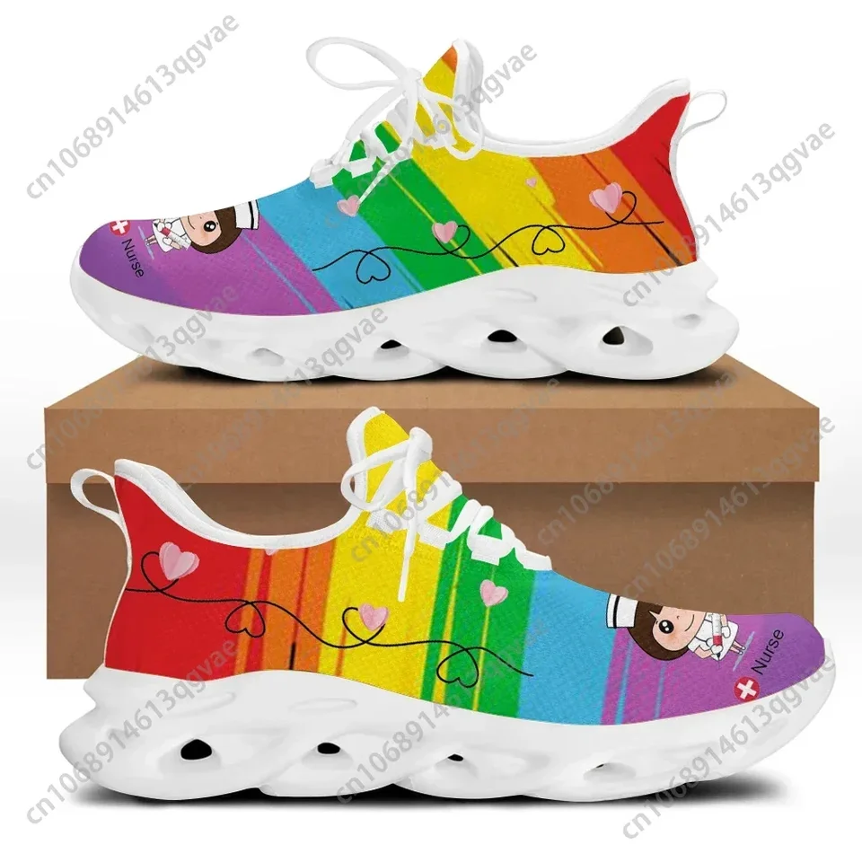 Rainbow Cartoon Nurse Printed Women’s Sneakers – Lightweight Nursing Walking Shoes