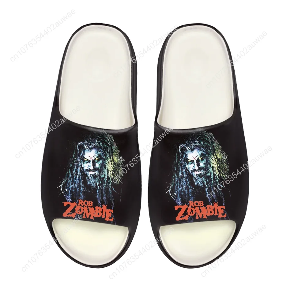 Rob Zombie Graphic Slide Sandals – Black/White Heavy Metal Rock Band Casual Footwear