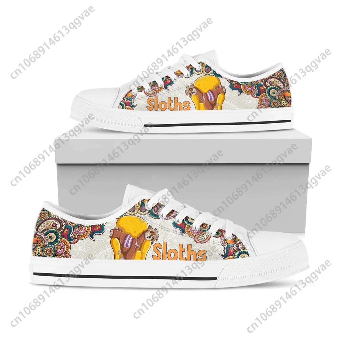 Unisex Sloth Canvas Low Top Sneakers, Funny Cartoon Sloth with Backpack ‘Sloths’ Text, Colorful Paisley Mandala Pattern Casual Walking Shoes, cn1068914613qqvqe