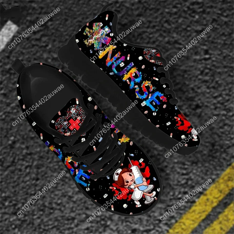 Women's Nurse-Themed Walking Sneakers - Colorful Medical Graphic Shoes for Healthcare Professionals